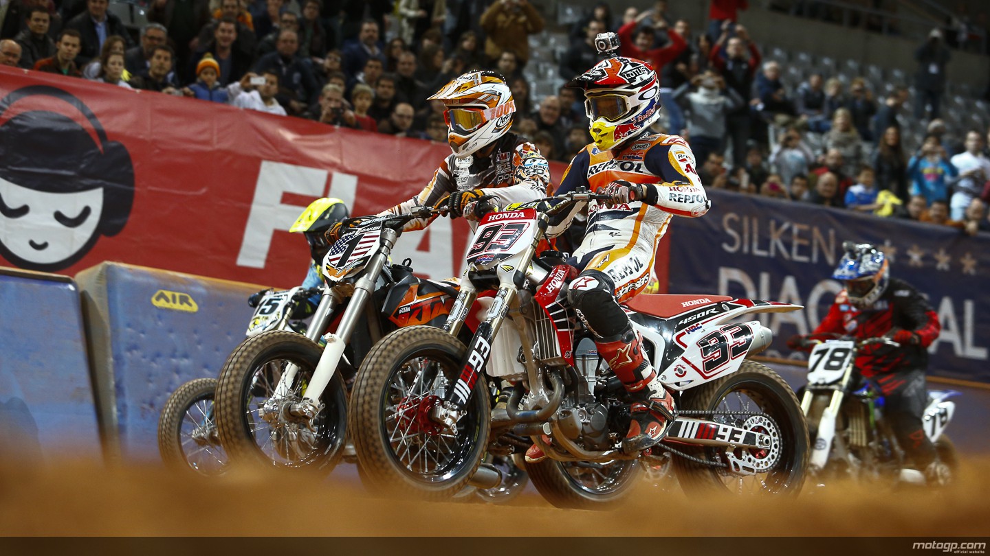 A dirt track versenyzés köztudottan egy amerikai találmány. Az Egyesült Államokból indult hódító útjára még az Első Világháború idején. Nem csoda hát, hogy amerikában rajonganak a sportért és az amerikai bajnokság egy-egy fordulója óriási tömegeket vonz. Marc Márquez is gyakran használja ezt a versenyformát kiegészítő edzésként a felkészülései során (egy ilyen edzésen szenvedett lábtörést február közepén), az idei év elején még egy nemzetközinek mondható futamot is szerveztek ketten Emilio Alzamorával Barcelonában "Superprestigio Dirt Track" szalagcímen, ahol a MotoGP mezőny apraja-nagyja megfordult, sőt még az amerikai flat-track királyt, a szintén 21 éves Brad Bakert is sikerült elcsábítani a jeles eseményre. A "The Bullet" (A golyó) becenévre hallgató ifjú, aki egyébként szinte napra pontosan egyidős a mi bajnokunkkal, nagy csatában kerekedett felül Marquezen januárban, de az esemény után úgy tűnik jó barátság alakult ki köztük, mivel Baker meghívta őt az amerikai flat-track bajnokság indianapolis-i fordulójára, ami pontosan a indianapolis-i MotoGP hétvégével esik egybe, úgyhogy még nem is kell sokat utazni a két esemény között. Marc dirt track szerelmesként kapott is az alkalmon és elfogadta a meghívást, hogy élőben nézhessen meg egy futamot, még akkor is ha épp egybe esik az Indy GP hétvégéjével."Már nagyon izgatottan várom ezt az alkalmat"- kezdte Marc. "Imádom a dirt track-et és ez lesz a második alkalom, hogy élőben nézhetek meg egy futamot a pálya mellől. Már várom, hogy ott lehessek, az összes amerikai rajongómmal az Indy GP alatt".